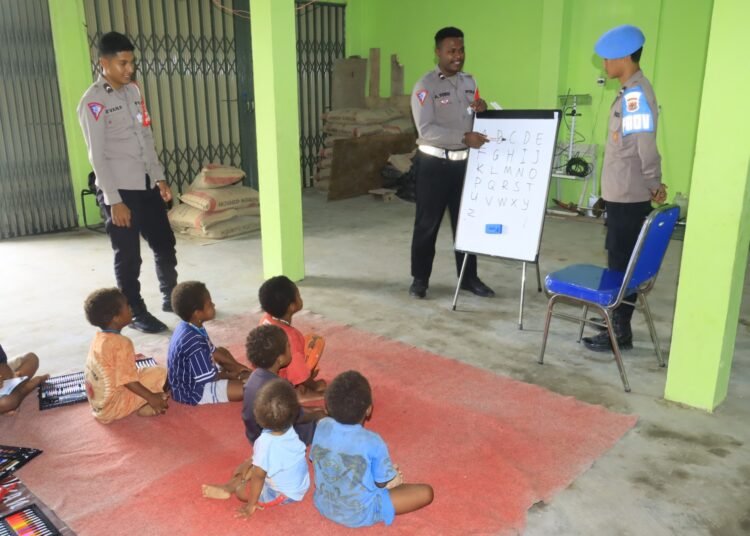 Papua – Subsatgas Si-Ipar Operasi Rasaka Cartenz Polres Yalimo terus menunjukkan kepeduliannya terhadap masa depan generasi muda di Kabupaten Yalimo. Melalui kegiatan belajar bersama yang digelar pada Rabu (01/10/2025), personel Satgas hadir memberikan pendampingan kepada anak-anak yang tidak bersekolah agar tetap memiliki kesempatan memperoleh ilmu pengetahuan.