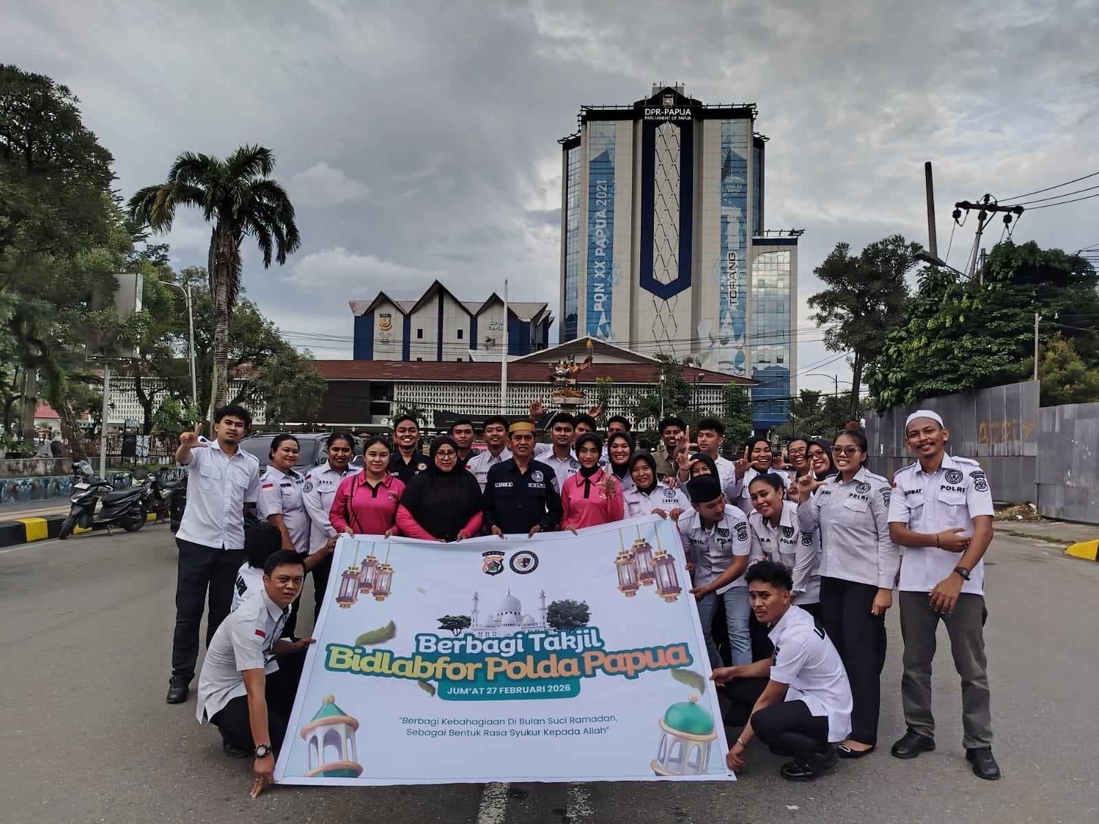Papua – Dalam semangat berbagi dan mempererat kebersamaan di bulan suci Ramadhan 1447 Hijriah/2026 Masehi, Bidang Laboratorium Forensik (Bidlabfor) Polda Papua melaksanakan kegiatan pembagian takjil kepada masyarakat di kawasan Taman Imbi Kota, Jumat (27/2/2026).