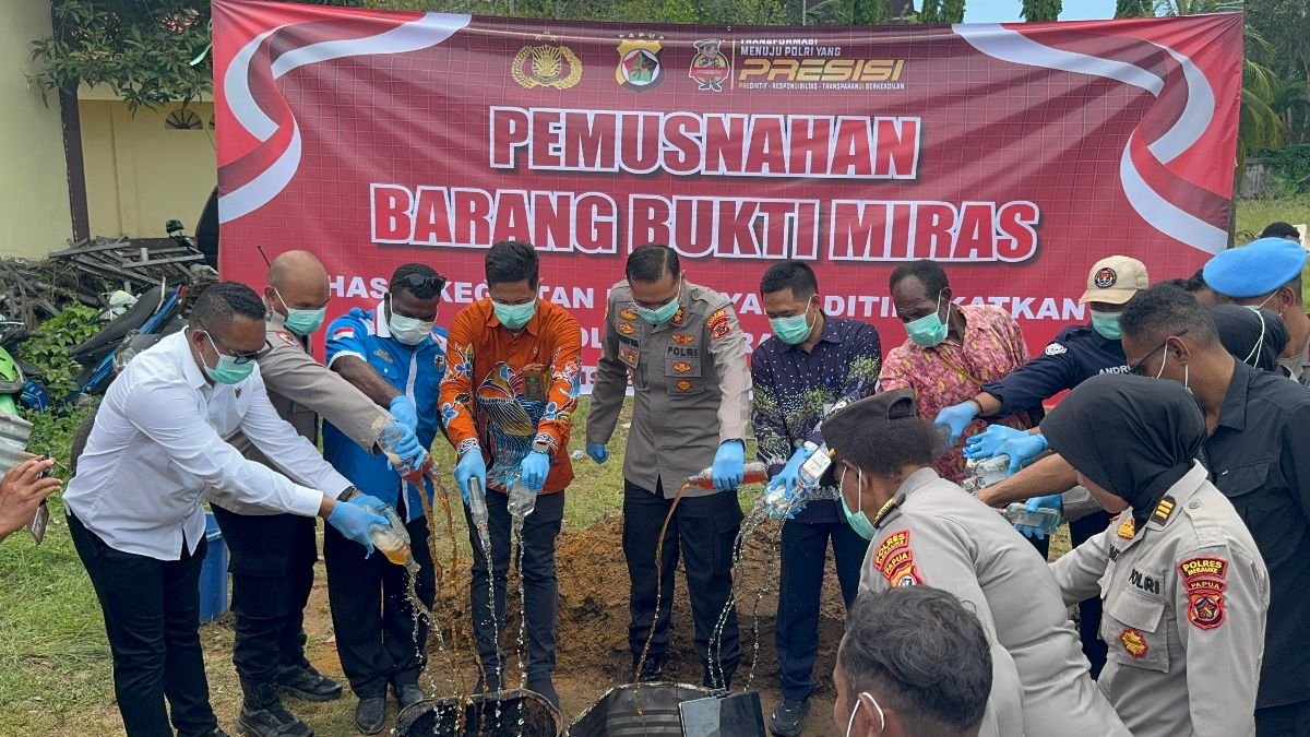 Polres Merauke Musnahkan Ribuan Liter Miras Ilegal dan Miras Lokal Jenis Sopi Hasil Kegiatan Rutin yang Ditingkatkan