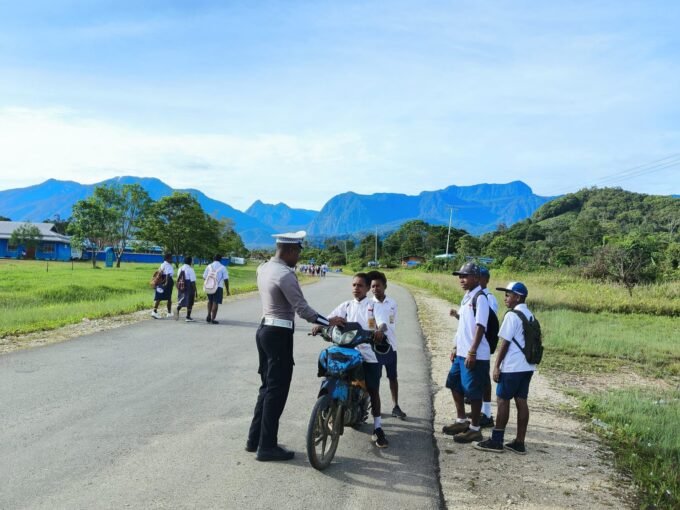 Sat Lantas Polres Mamberamo Tengah Berikan Edukasi Kamseltibcar Lantas bagi Pelajar di Kobakma
