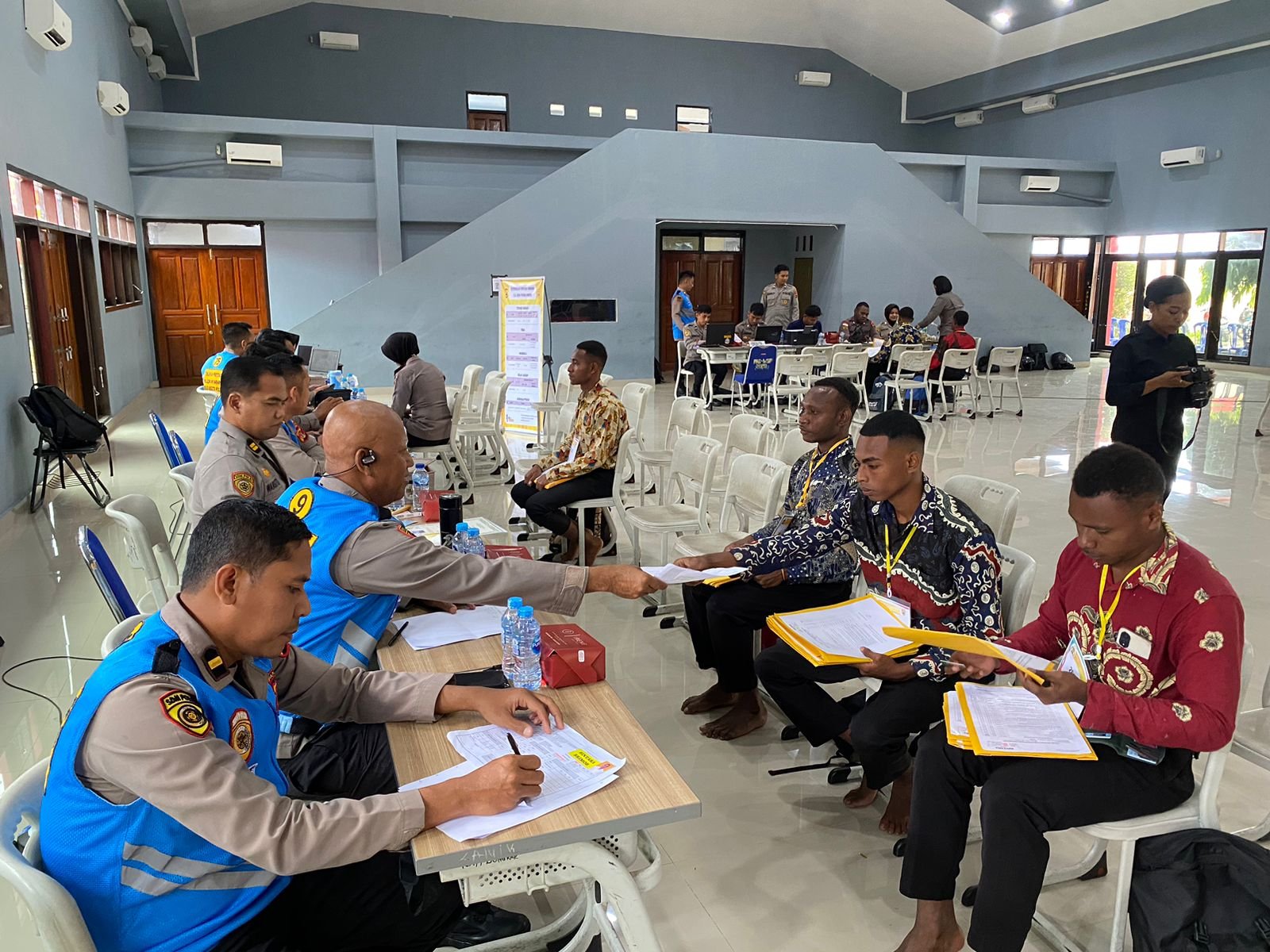 Papua – Pelaksanaan pemeriksaan administrasi (Rikmin) Penerimaan Bintara Brimob T.A. 2025 Panda Papua memasuki hari ketiga yang digelar di Aula Elsama Numberi SPN Polda Papua. Kegiatan ini berjalan dengan lancar dan penuh kedisiplinan sebagai tahap penting sebelum peserta melanjutkan ke rangkaian seleksi berikutnya, Sabtu (22/11/25).
