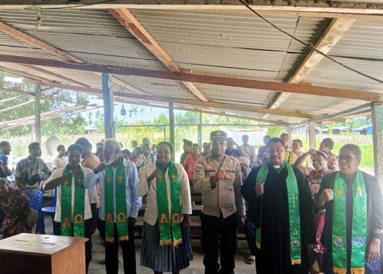 Papua – Dalam rangka mempererat tali silaturahmi sekaligus membangun kemitraan yang harmonis antara Polri dan masyarakat, Kanit Binmas Polsek Muara Tami, IPDA Yanto Rumbruren selaku Bhabinkamtibmas melaksanakan Ibadah Minggu Kasih bersama Jemaat GKI Telaga Mamberamo, Koya Timur, Distrik Muara Tami, Kota Jayapura, pada Minggu (16/11/2025).