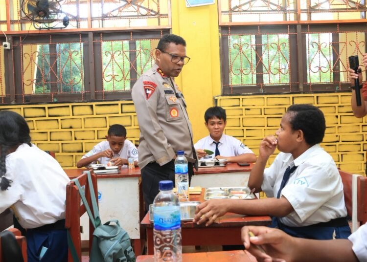 Papua – Kapolda Papua Irjen Pol. Patrige R. Renwarin, S.H., M.Si., didampingi Irwasda Polda Papua Kombes Pol. Jeremias Rontini, S.I.K., bersama jajaran Polda Papua meninjau secara langsung pelaksanaan Program Makan Bergizi Gratis (MBG) di sejumlah sekolah di wilayah Kecamatan Jayapura Utara, Kabupaten Jayapura, pada Senin (29/9/2025).