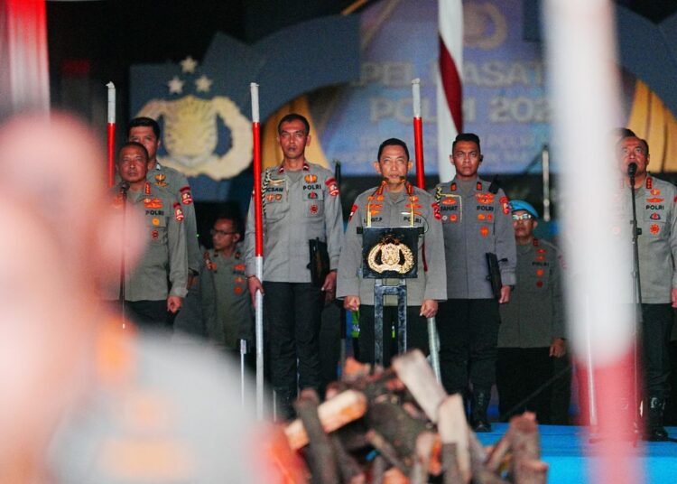 Bogor – Kapolri Jenderal Listyo Sigit Prabowo memimpin langsung Renungan Nilai-Nilai Ksatria Bhayangkara, sebuah prosesi sakral yang menjadi rangkaian utama dalam Apel Kasatwil 2025. Kegiatan ini digelar di Mako Satuan Latihan Korbrimob Polri, Cikeas, Kabupaten Bogor, dengan melibatkan seluruh unsur kepemimpinan operasional Polri.