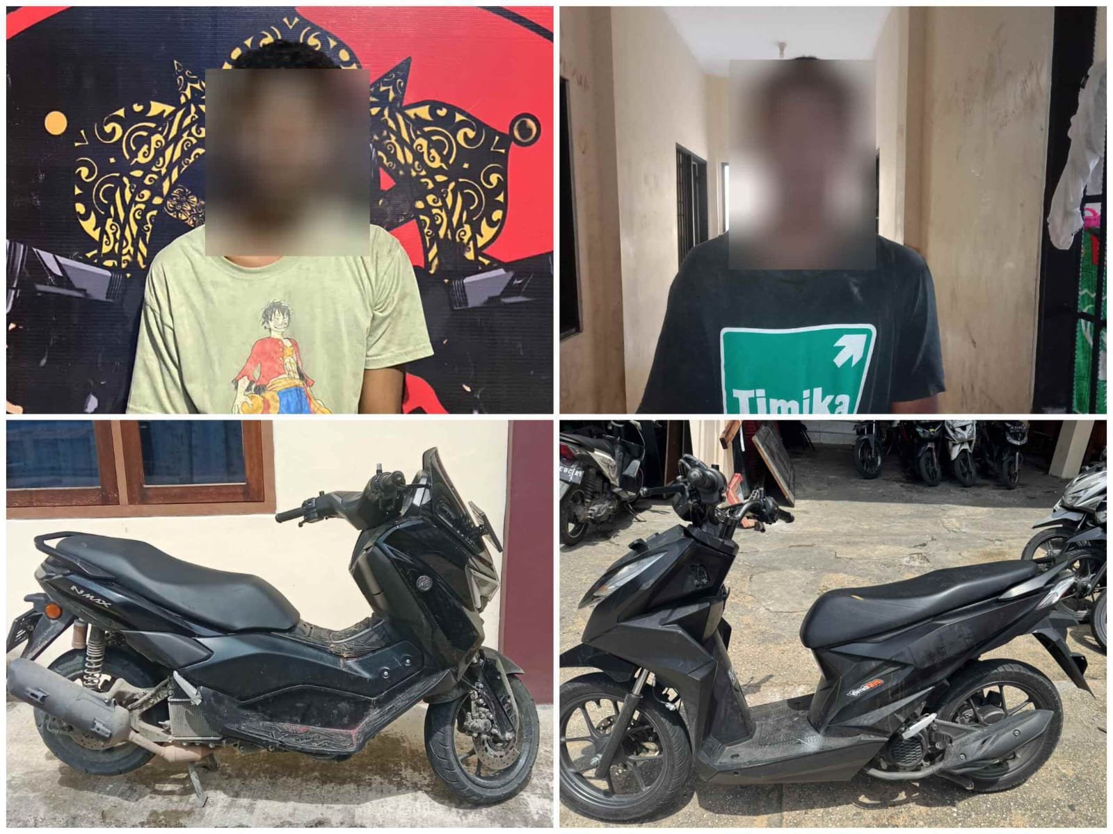 Kasus kedua terjadi pada Sabtu (27/09) sekitar pukul 14.00 WIT di area parkir RS Dian Harapan, Waena, Distrik Heram. Korban, seorang ibu rumah tangga bernama Rika Sundari (41), melaporkan sepeda motor miliknya jenis Yamaha NMAX warna hitam hilang saat diparkir di lokasi tersebut. Berdasarkan hasil penyelidikan, pelaku berhasil diidentifikasi berinisial MW (16), seorang pelajar SMA. Pada Rabu (01/10), Tim Opsnal Polsek Heram berhasil menangkap pelaku serta mengamankan barang bukti berupa 1 unit sepeda motor Yamaha NMAX warna hitam beserta STNK kendaraan.