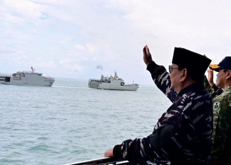 Jakarta – (Puspen TNI). Panglima TNI Jenderal TNI Agus Subiyanto mendampingi Presiden Republik Indonesia, Prabowo Subianto, dalam kegiatan Presidential Inspection yang digelar di perairan Teluk Jakarta, Kamis (2/10/2025). Acara ini merupakan bagian dari rangkaian peringatan HUT ke-80 TNI Tahun 2025.