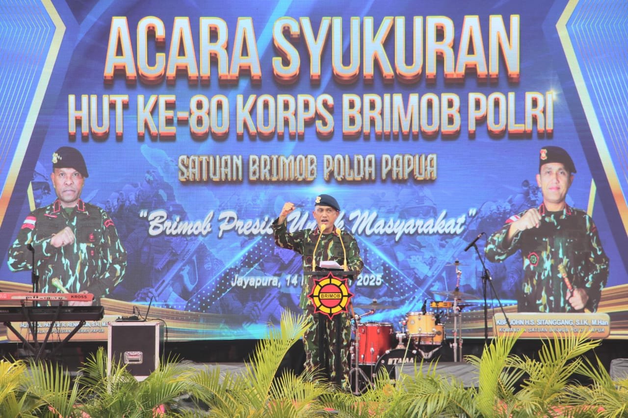 Dansat Brimob Polda Papua Kombes Pol John H.S. Sitanggang, S.I.K., M.Han., dalam kesempatan ini menyampaikan ungkapan syukur atas perjalanan delapan dekade Korps Brimob Polri.