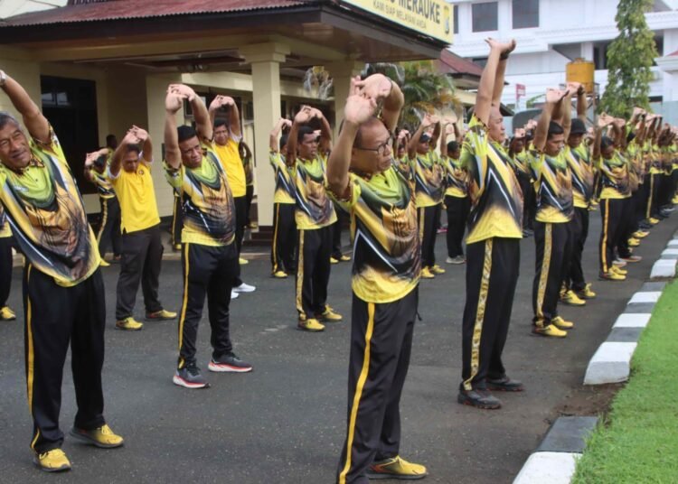 Papua – Pelaksannaan Olahraga Pagi yang diikuti Seluruh Personel Polres Merauke, guna menjaga kebugaran dan kesehatan agar senantiasa siap dalam melindungi, mengayomi, dan melayani. Pada Jumat(3/10/2025) bertempat di Mako Polres Merauke, Jalan Brawijaya, Kabupaten Merauke, Provinsi Papua Selatan.