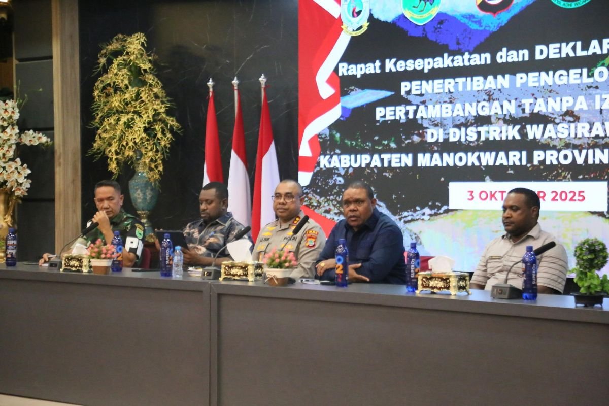 Kegiatan ini merupakan tindak lanjut dari rapat koordinasi yang digelar sebelumnya pada 29 September 2025, terkait meningkatnya aktivitas pertambangan ilegal di Wasirawi, Rapat kali ini diikuti sekitar 70 peserta yang terdiri dari unsur pemerintah daerah, TNI-Polri, DPRK, MRPB, tokoh adat, pemilik hak ulayat, hingga pelaku usaha tambang.