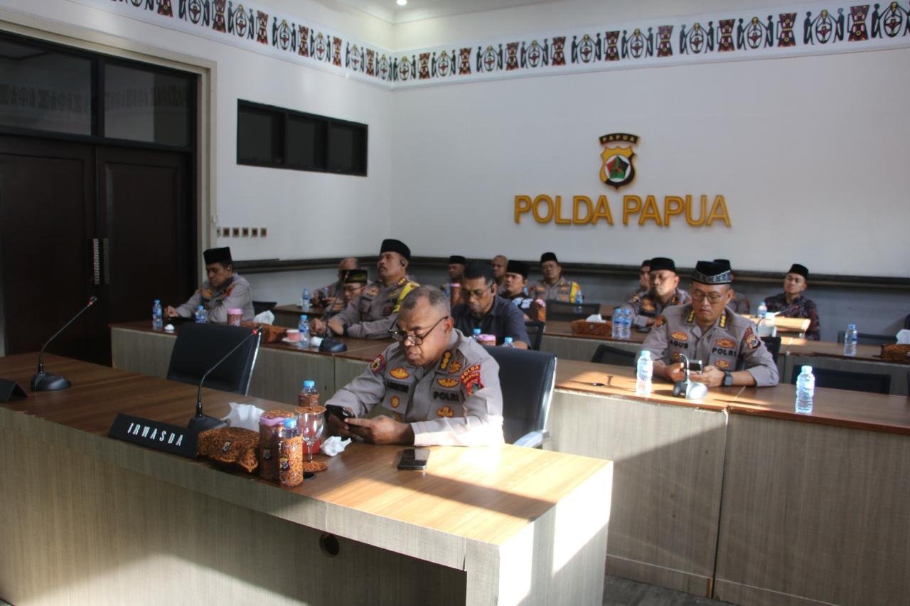 Kegiatan ini diikuti oleh Irwasda Polda Papua Kombes Pol. Jermias Rontin, S.I.K., M.Si., Karo Ops Polda Papua Kombes Pol. Selamat Topan, S.I.K., M.Si., Karo Rena Polda Papua Kombes Pol. Ary Wahyu Widijananto, S.I., serta para PJU Polda Papua lainnya.
