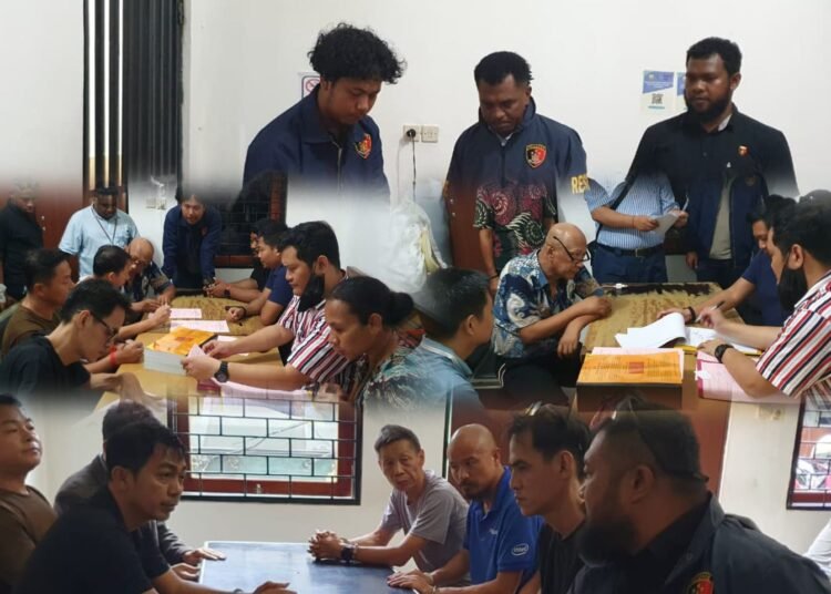 Papua – Direktorat Reserse Kriminal Khusus (Ditreskrimsus) Polda Papua menyerahkan tujuh tersangka kasus tindak pidana pertambangan mineral logam komoditas emas kepada Kejaksaan Tinggi Papua dalam proses Tahap II, Jumat (28/11/2025) di Kantor Kejaksaan Negeri Jayapura.