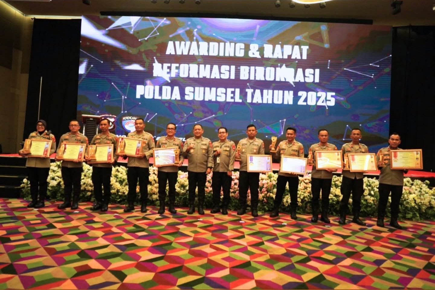 Pada kesempatan tersebut, Polda Sumsel juga memberikan penghargaan kepada satuan kerja yang berprestasi dalam pelaksanaan reformasi birokrasi dan peningkatan kualitas pelayanan publik.