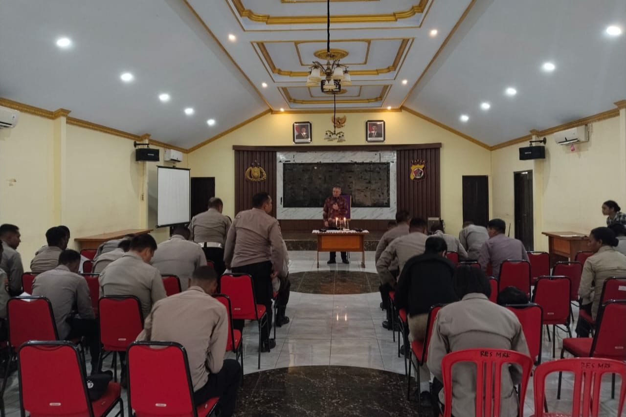Papua – Polres Merauke melaksanakan kegiatan Pembinaan Rohani dan Mental (Binrohtal) bagi seluruh personel dan PNS yang beragama Islam, Nasrani, dan Hindu, pada Kamis (18/12/2025) pukul 08.30 WIT. Kegiatan ini dilaksanakan serentak di tempat ibadah masing-masing, yakni Masjid Al Hadi, Aula SAR Polres Merauke, serta Ruang Kasikum Polres Merauke.