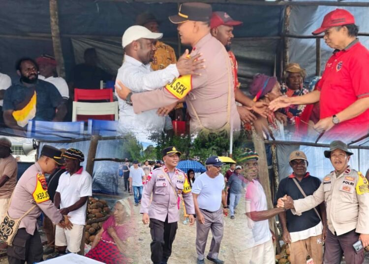 Papua – Dalam upaya mempererat hubungan antara aparat keamanan dan masyarakat, Kapolsek Bokondini Ipda Eko Haryanto, S.H. bersama personel Bhabinkamtibmas Polsek Bokondini melaksanakan kegiatan sambang dan menyerahkan bantuan untuk pembangunan Gedung Gereja Yerusalem yang berlokasi di Lapangan Sepak Bola Distrik Bokondini, Kabupaten Tolikara, Senin (06/10/2025).