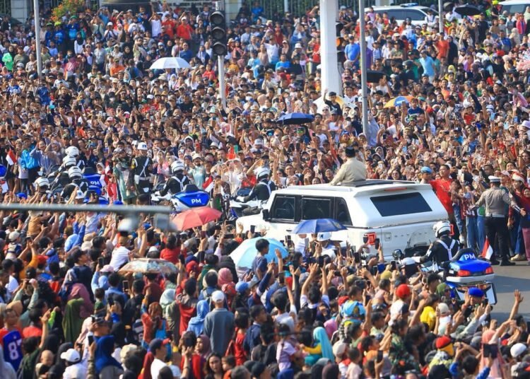Jakarta – (Puspen TNI). Masyarakat dari berbagai lapisan tampak memadati kawasan Istana Merdeka hingga Monumen Nasional (Monas) untuk menyaksikan rangkaian kebesaran Presiden Republik Indonesia Prabowo Subianto menuju lokasi Upacara Peringatan Hari Ulang Tahun ke-80 Tentara Nasional Indonesia (TNI), Minggu (5/10/2025). Antusiasme tersebut mencerminkan kedekatan dan kebersamaan antara TNI dan rakyat dalam memperingati delapan dekade pengabdian TNI kepada bangsa dan negara.