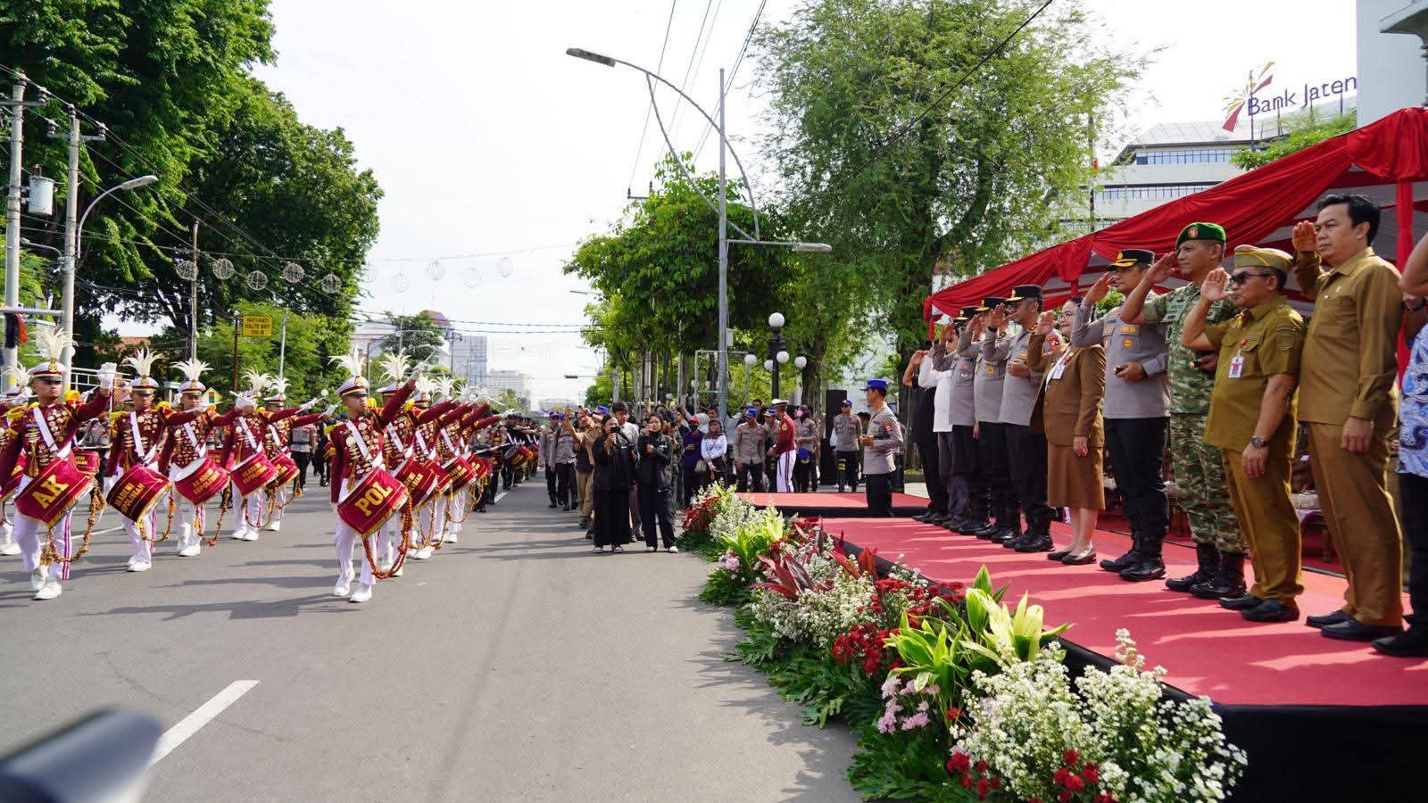Dari titik start di halaman Balai Kota, rombongan kirab bergerak melewati Jalan Pemuda, Tugu Muda, Jalan Pandanaran, Simpang Lima, Jalan Pahlawan, hingga finish di Markas Polda Jawa Tengah. Sekitar 500 peserta mengikuti pawai ini, dipimpin Drum Band Cendrawasih Akpol yang memecah suasana dengan tempo penuh energi. Di belakangnya, Taruna Tingkat III yang bersiap menyelesaikan masa pendidikan tampak berjalan dengan sikap tegap. Barisan ditutup oleh Taruna Tingkat I, wajah-wajah baru yang akan memulai perjalanan panjang sebagai calon perwira Polri.