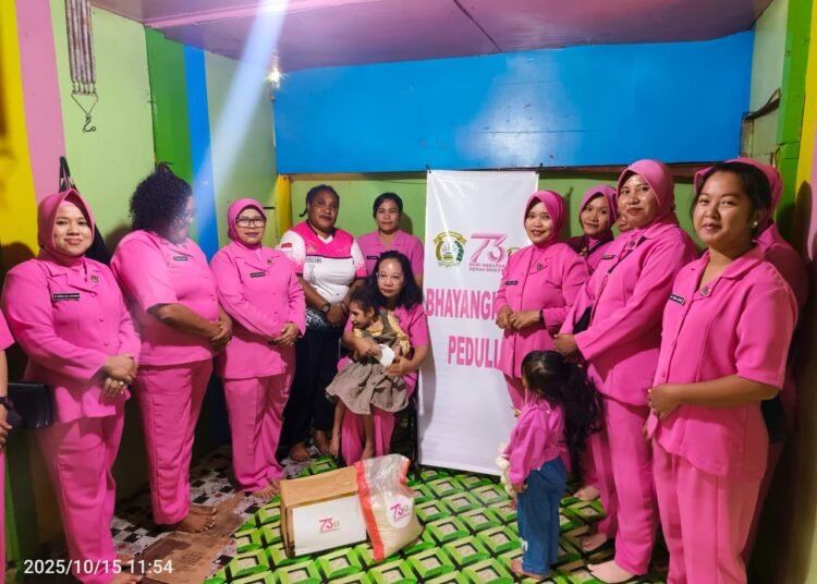Papua – Dalam rangka menyambut Hari Kesatuan Gerak Bhayangkari (HKGB) ke-73, Ketua Bhayangkari Cabang Tolikara, Ny. Erni Roberth Hitipeuw, bersama pengurus menggelar kegiatan sosial bertajuk “Bhayangkari Peduli” dengan memberikan perhatian khusus kepada anak-anak penyandang disabilitas di wilayah Karubaga, Rabu (15/10/2025).