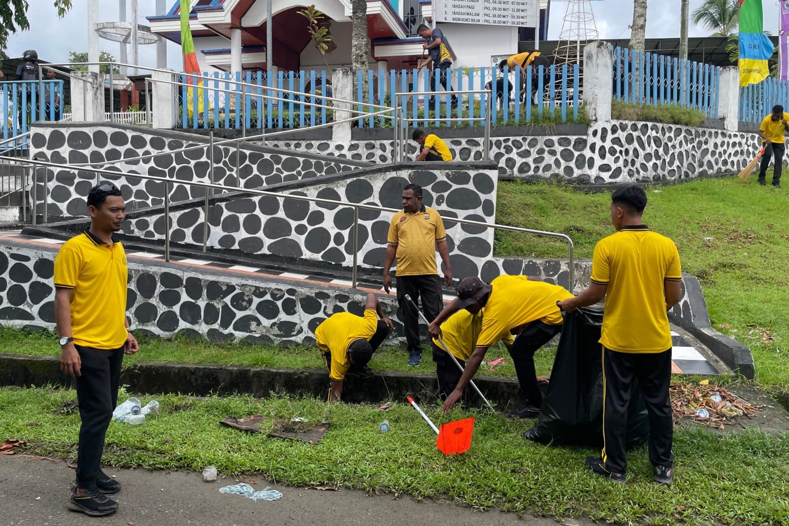 Di Gereja Adonia, Gereja Shion dan Gereja Otto Geisler, rombongan Polda Papua Barat melaksanakan pembersihan di sekitar halaman gereja sebagai simbol kepedulian Polri terhadap kerukunan umat beragama.