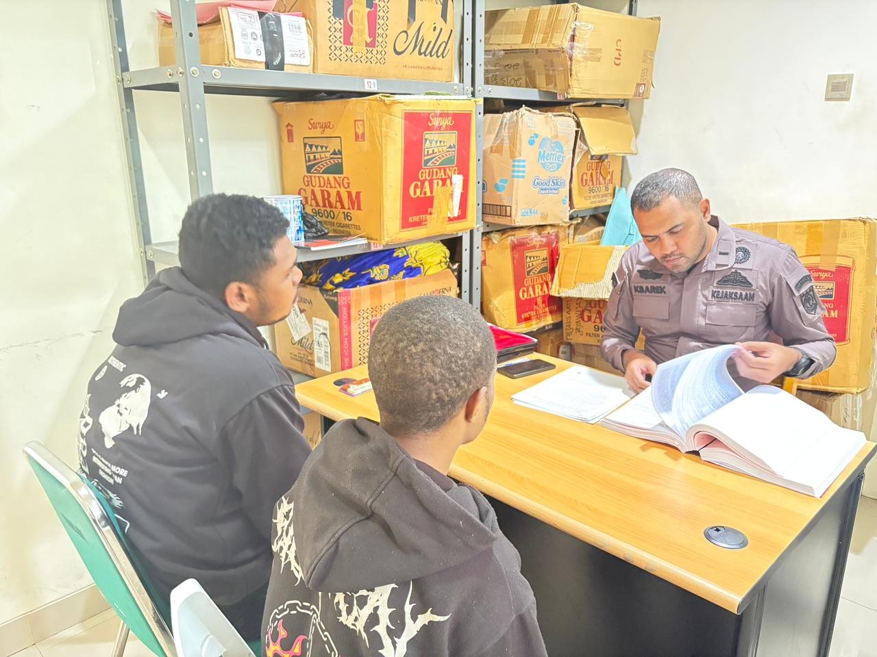 Jaksa Penuntut Umum dalam perkara ini adalah Margrith Elain Duwiri, S.H.. Dalam penyerahan tahap II tersebut, penyidik turut menyerahkan sejumlah barang bukti, antara lain, satu bilah parang dan satu bilah pisau tanpa gagang, kayu dalam keadaan terbakar, serpihan kaca berwarna hitam dan putih, tiga unit ponsel berbagai merek (warna hijau ZTE Blade A35, warna biru Nubia A56, warna merah Oppo A31), dan satu lembar bendera Bintang Kejora.