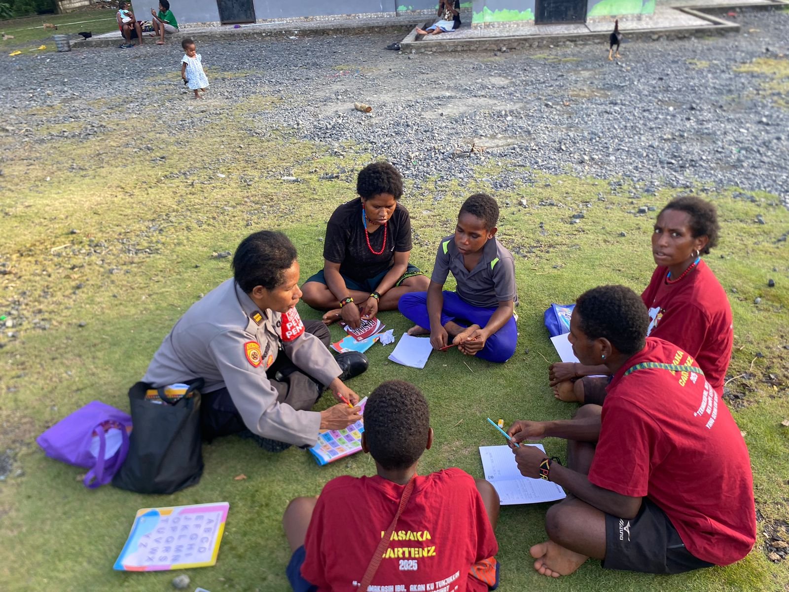 Dalam kegiatan tersebut, AKP Yonias Purwanto memberikan materi berhitung kepada para mama-mama, sementara Briptu Nicky Thobias Kayukatui membimbing anak-anak yang masih tahap awal belajar membaca. Adapun Bripda Evelin Murni Awes mendampingi anak-anak yang sudah lancar membaca dan menulis untuk meningkatkan kemampuan mereka.