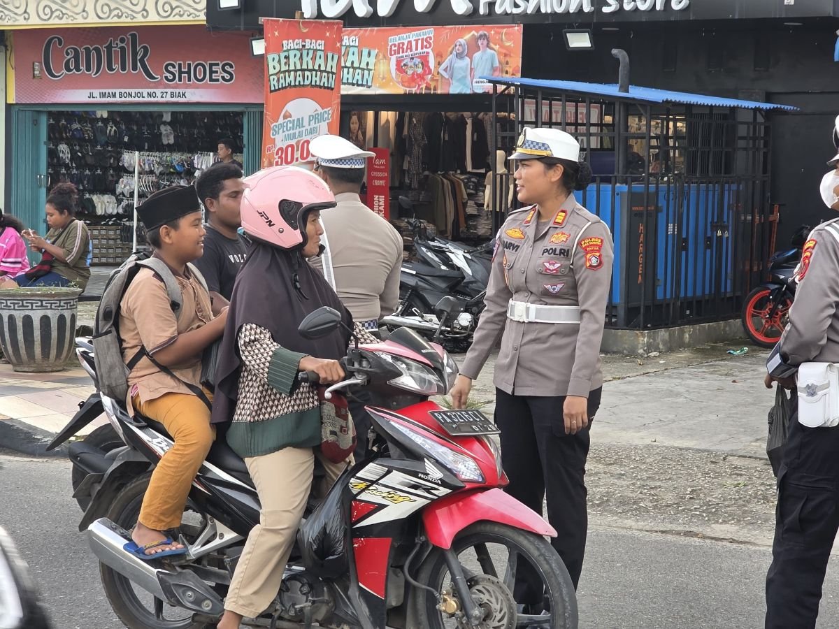 Papua – Dalam rangka Program Polantas Menyapa di bulan suci Ramadhan 1447 H, Satuan Lalu Lintas (Satlantas) Polres Biak Numfor melaksanakan kegiatan pembagian takjil kepada masyarakat yang sedang menjalankan ibadah puasa, Sabtu (28/02/2026).