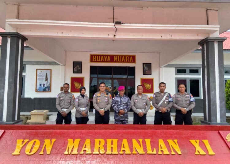 Papua – Dalam rangka memperingati Hari Ulang Tahun (HUT) ke-80 Tentara Nasional Indonesia (TNI) yang mengusung tema “TNI Prima, TNI Rakyat, Indonesia Maju”, Satuan Lalu Lintas (Satlantas) Polres Merauke melaksanakan kegiatan penyerahan tumpeng kepada Yon Marhanlan XI, pada Minggu (5/10/2025).