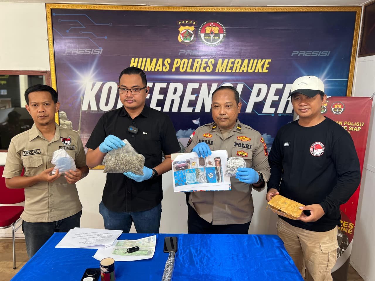 Pengungkapan kasus tersebut disampaikan dalam konferensi pers yang dipimpin langsung oleh Kasat Resnarkoba Polres Merauke AKP Rachmad Ridho Satrio, S.I.K., didampingi Kasie Humas Polres Merauke Ipda Andre Msb, S.Kom, serta penyidik Satresnarkoba, bertempat di Media Corner Humas Polres Merauke, Jumat (23/01/2026).