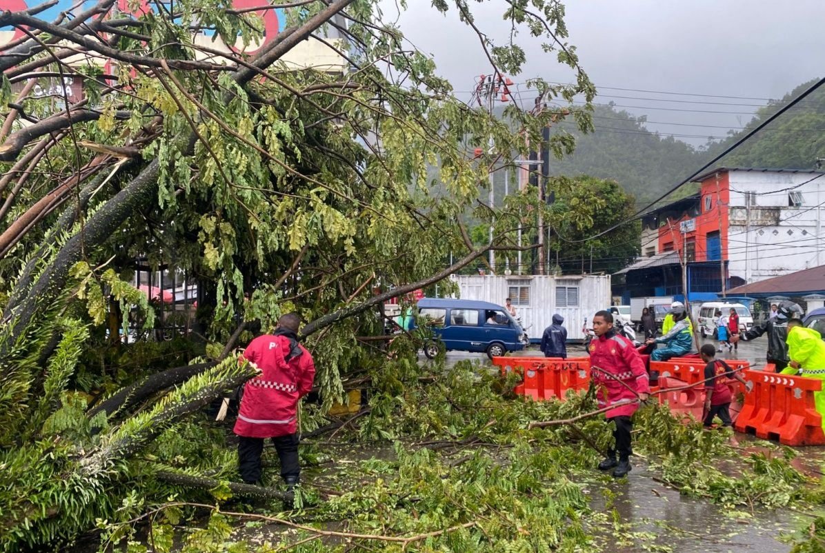 Papua – Tim SAR Direktorat Samapta Polda Papua melaksanakan aksi cepat tanggap dengan membersihkan pohon tumbang yang menghalangi jalan di depan Gedung Olahraga (GOR) Jayapura, usai hujan deras disertai angin kencang yang melanda wilayah tersebut, Selasa (28/10/2025).