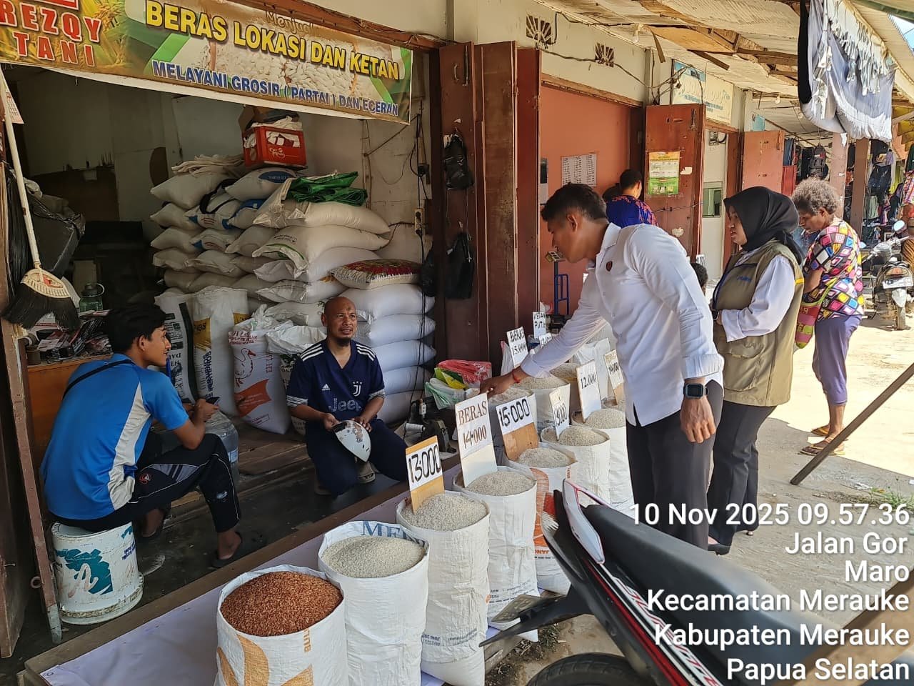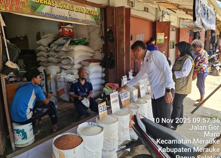 Papua – Tim Satgas melakukan pengecekan harga beras premium, medium, dan SPHP di wilayah Kabupaten Merauke, Papua Selatan, pada Senin, 10 November 2025. Pengecekan ini dilakukan untuk memastikan ketersediaan dan harga beras di pasar.