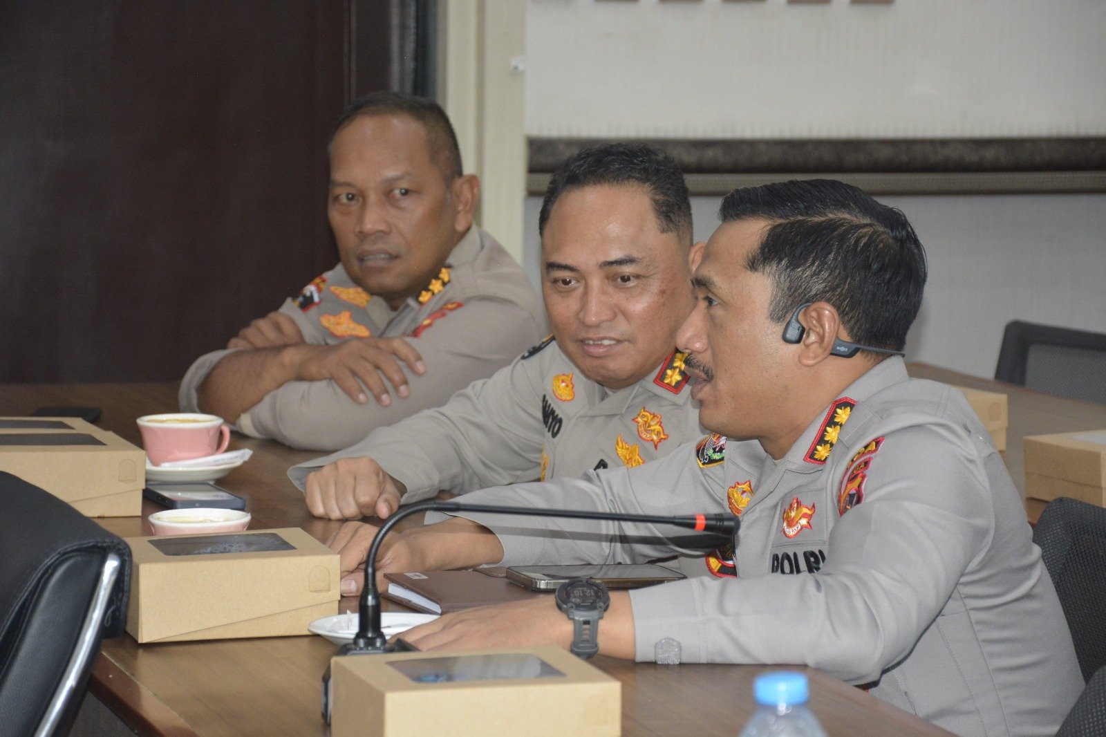 Papua – Kepolisian Daerah Papua mengikuti kegiatan Analisa dan Evaluasi (Anev) Perkembangan Sitkamtibmas Terkini Terkait Kesiapan Pengamanan Unjuk Rasa 1 Tahun Kabinet Merah Putih yang dipimpin langsung oleh Wakapolri, Komjen Pol. Prof. Dr. Dedi Prasetyo, S.H., M.Hum., M.Si., M.M melalui video conference, bertempat di Aula Cenderawasih Mapolda Lama, Kamis (9/10/2025).