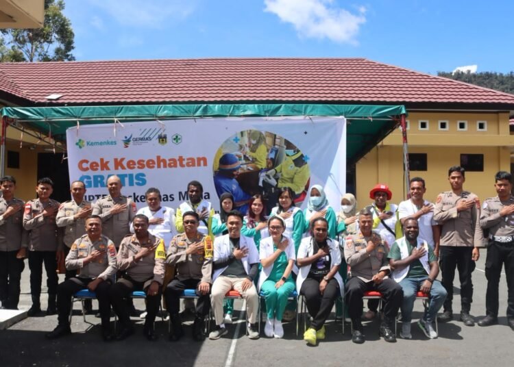 Papua – Dalam rangka menjaga dan memastikan kondisi kesehatan personel tetap prima, Polres Puncak Jaya bersama keluarga besar Bhayangkari mengikuti kegiatan pemeriksaan kesehatan gratis yang dilaksanakan oleh Puskesmas Mulia, bertempat di halaman Mako Polres Puncak Jaya, Sabtu (04/10).
